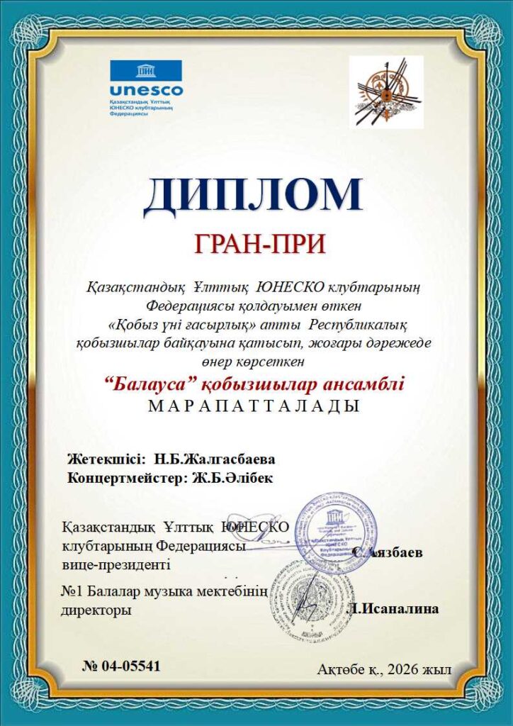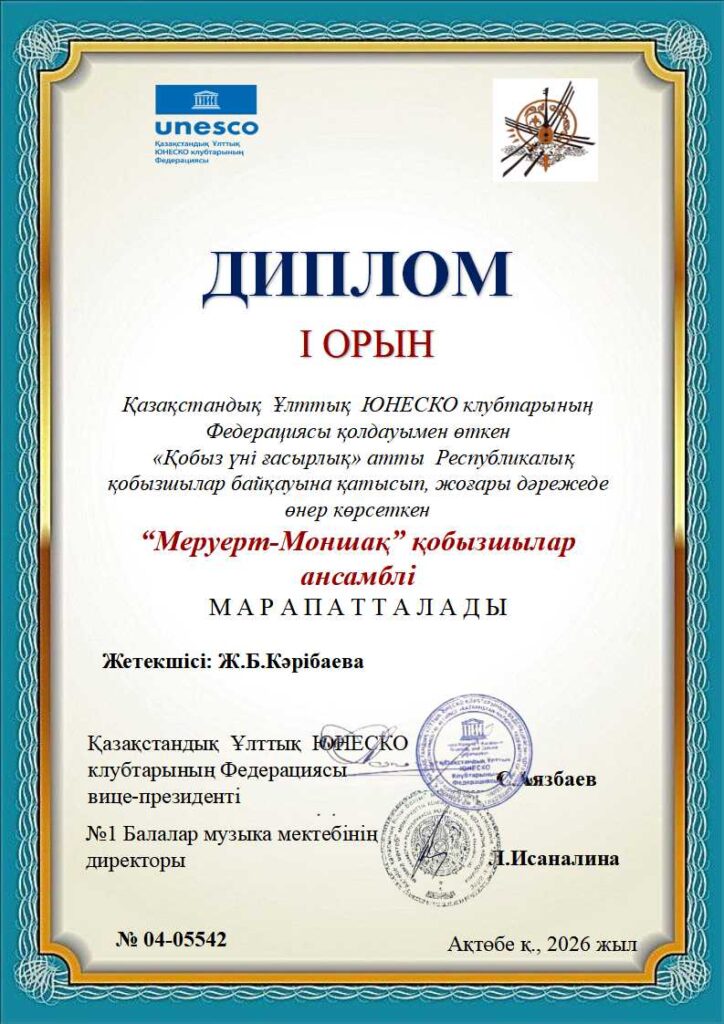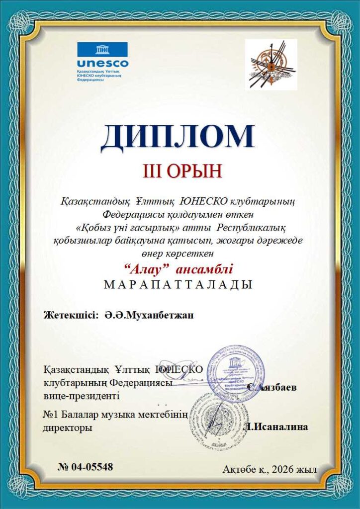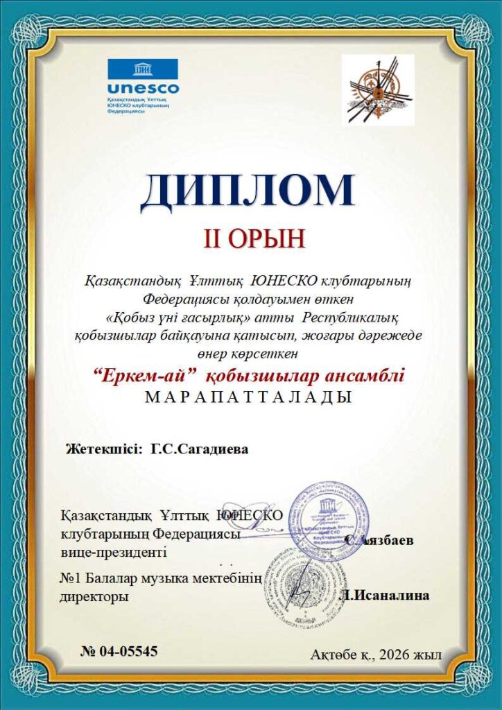 «Қобыз үні ғасырлық» Республикалық байқауының дипломдары АНСАМБЛДЕР