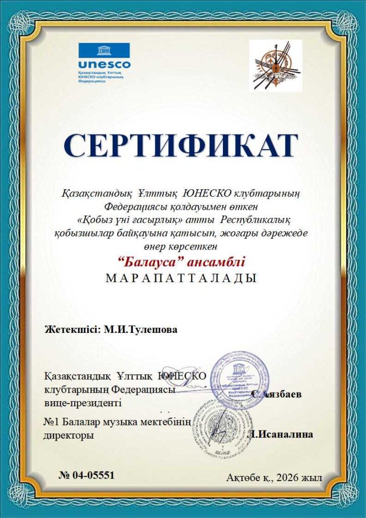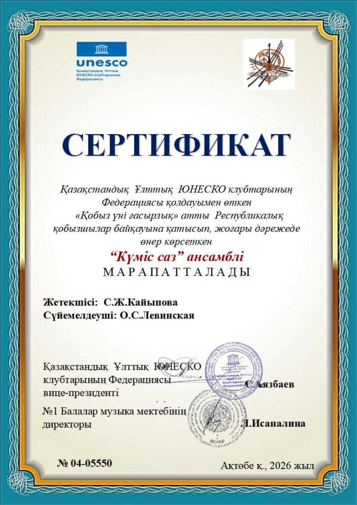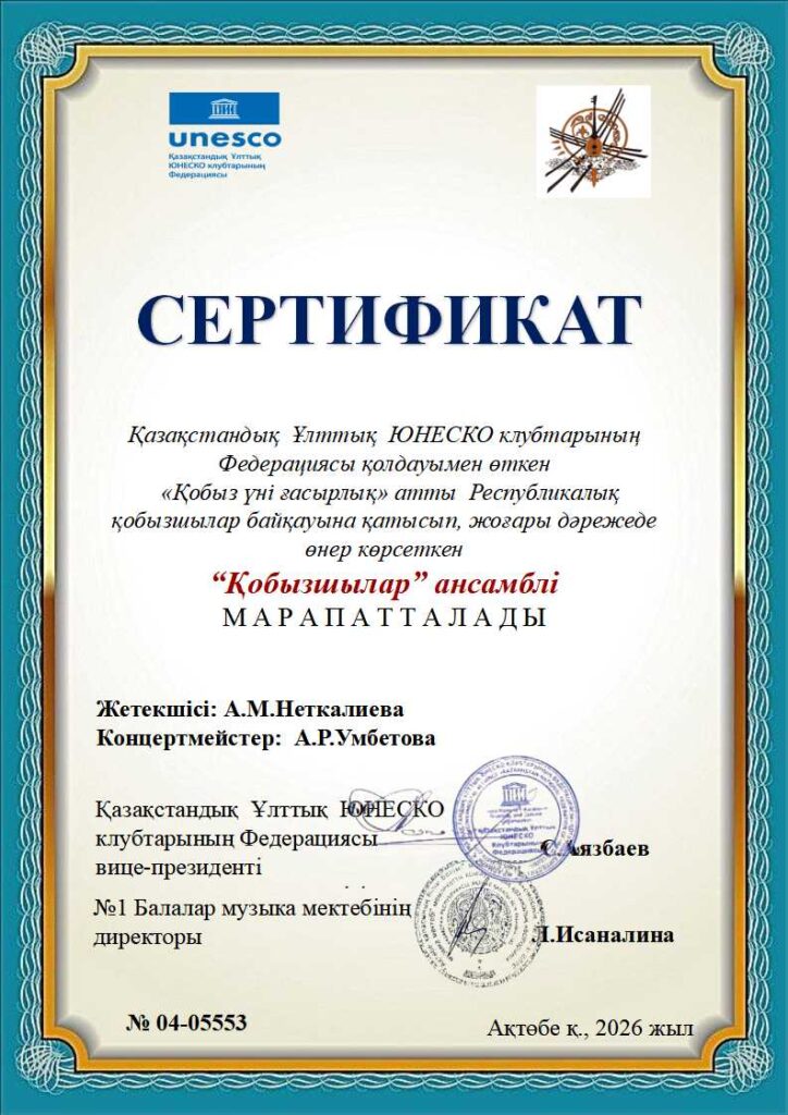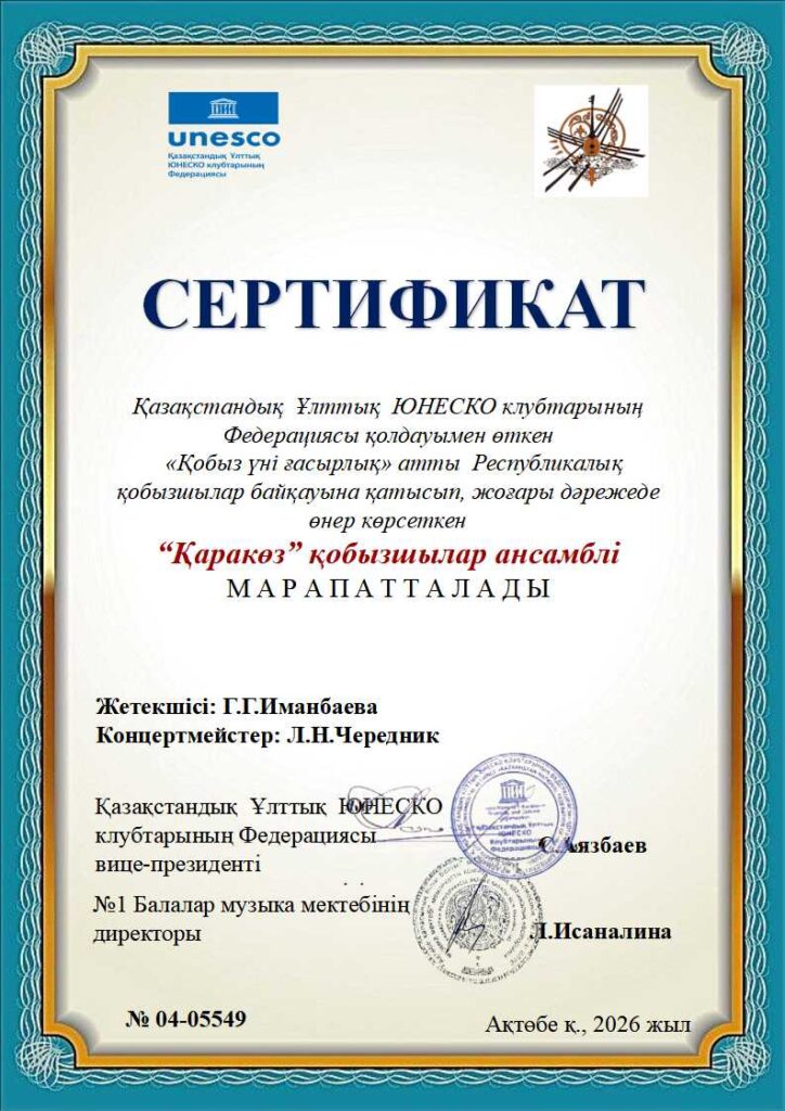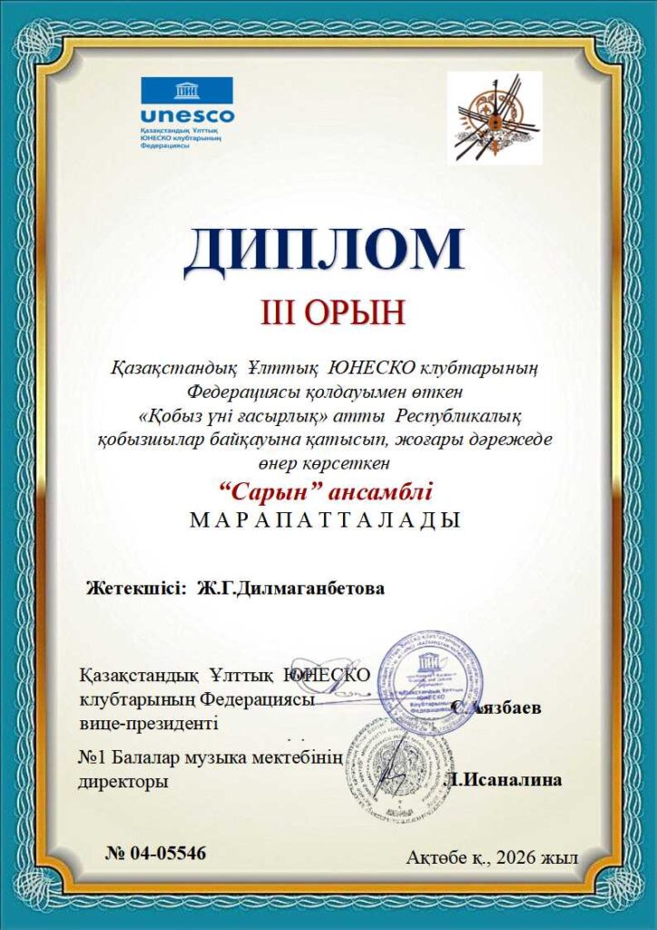 «Қобыз үні ғасырлық» Республикалық байқауының дипломдары АНСАМБЛДЕР