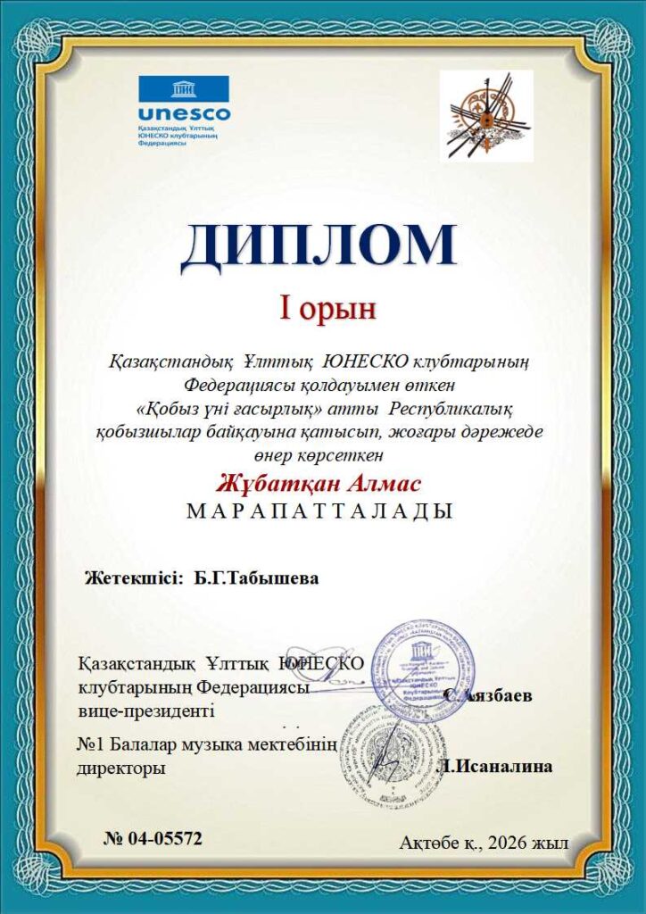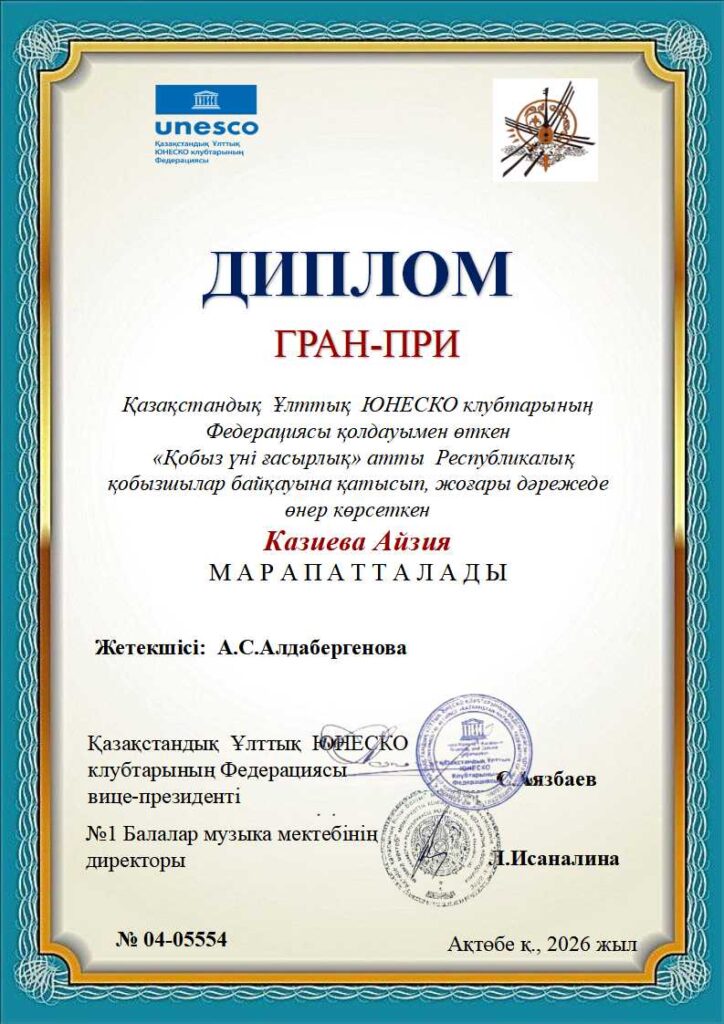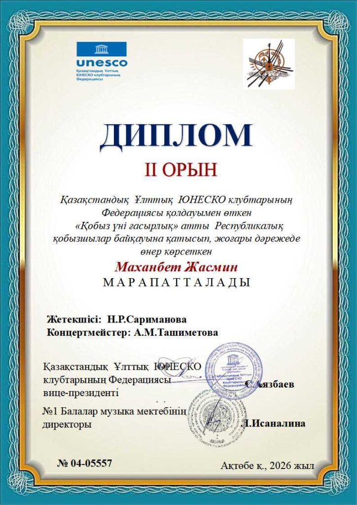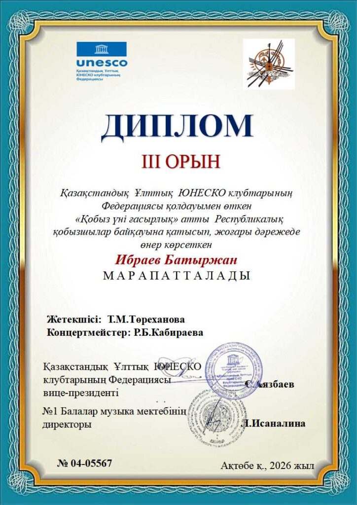«Қобыз үні ғасырлық» Республикалық байқауының дипломдары ҚЫЛ ҚОБЫЗ