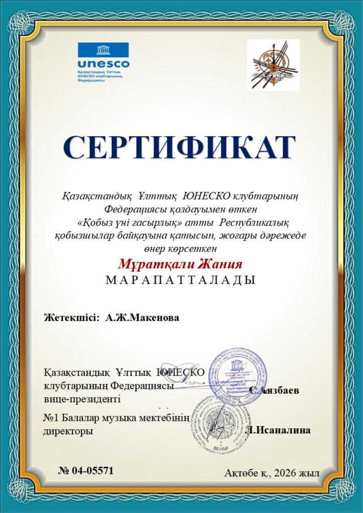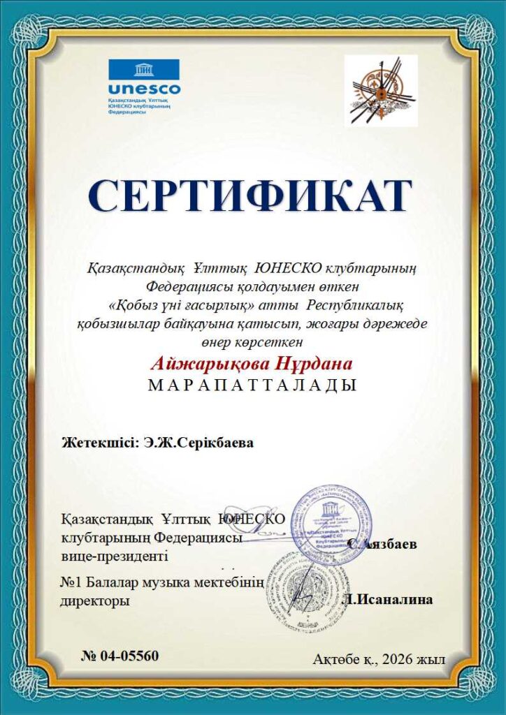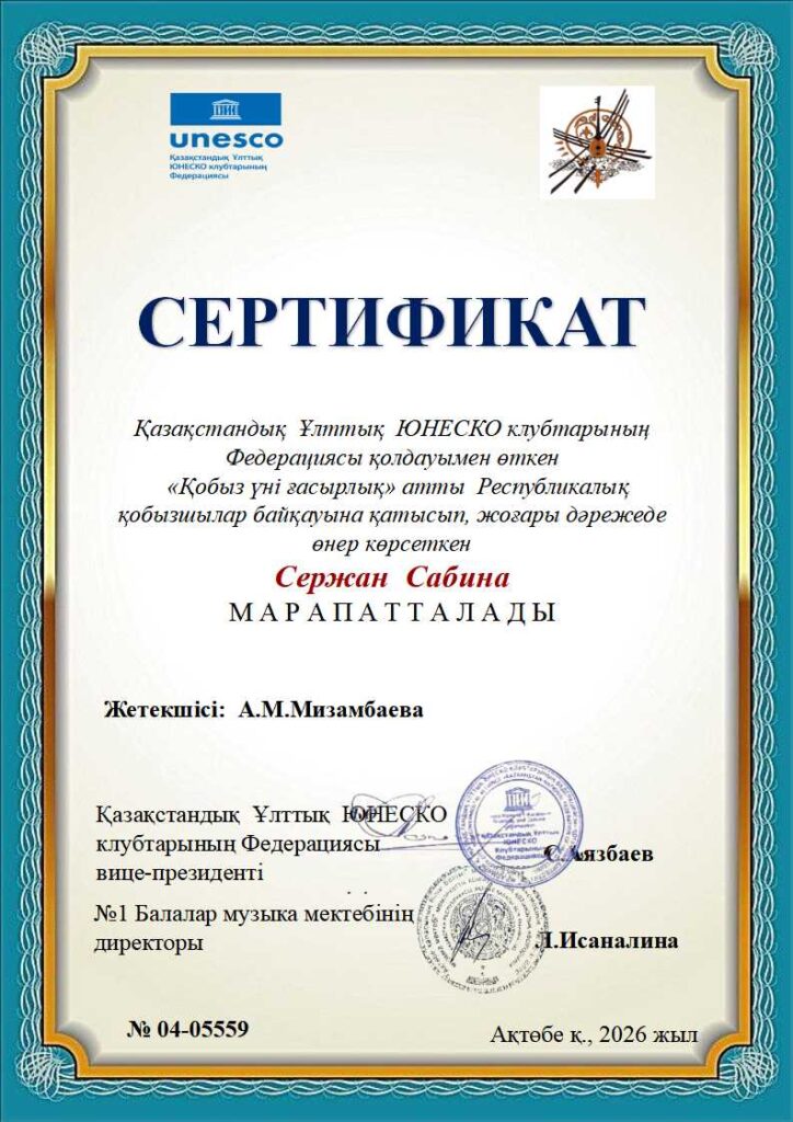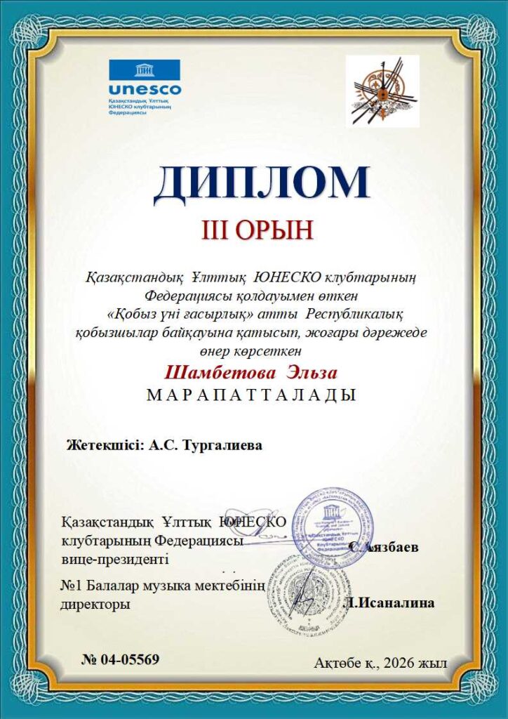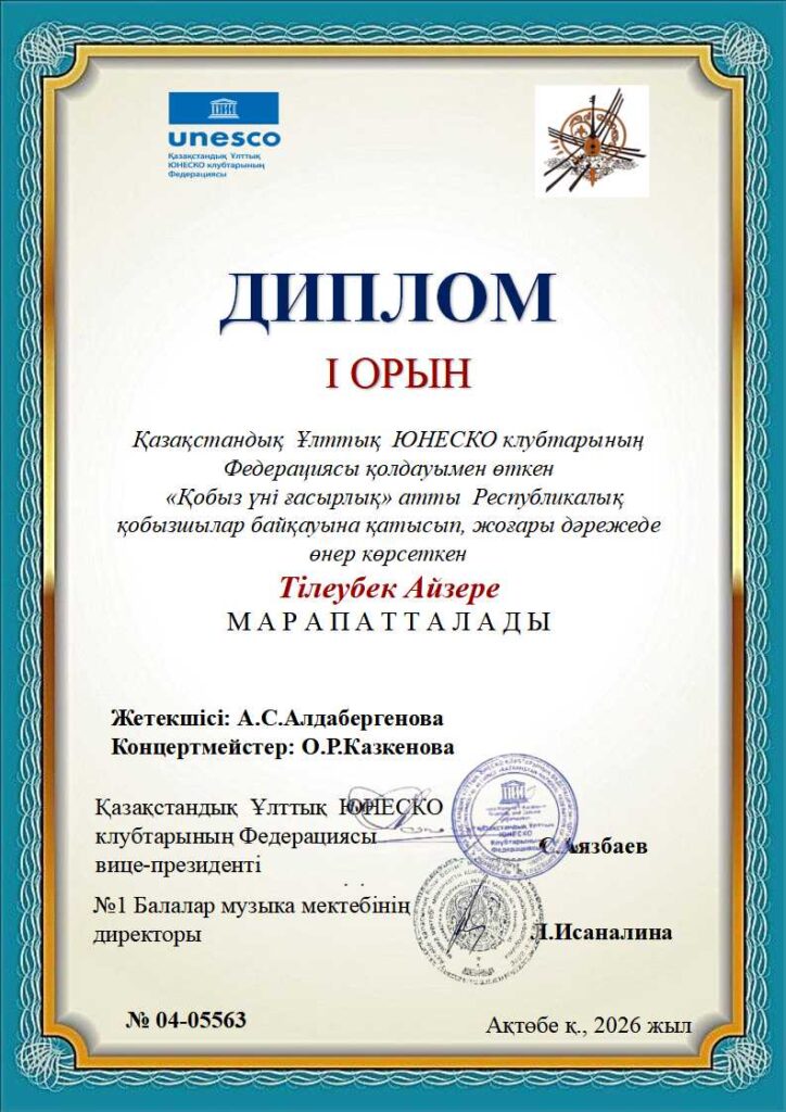 «Қобыз үні ғасырлық» Республикалық байқауының дипломдары ҚЫЛ ҚОБЫЗ